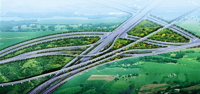 南四環(huán)主線依次下穿規(guī)劃鄭萬客專及鄭西貫通線,由地面道路、下穿地道和高架橋組成。高架橋部分全長771.5米,為雙向六車道,設(shè)計時速為80千米。