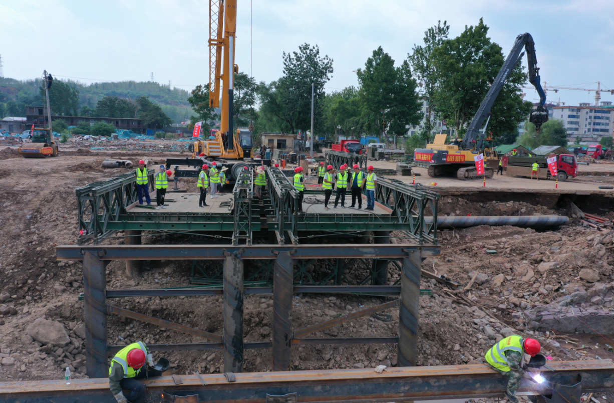汛情就是命令,搶險就是責任。據(jù)不完全統(tǒng)計,路通公司承擔的大大小小搶險工程50余項,涉及滎陽、鞏義、上街、新密等地,涵蓋城市快速路、國省干線公路和農村地方道路。整個搶險期間,所有人員吃住在現(xiàn)場,人歇機不停,全力推進施工進度,確保第一時間恢復道路通行,為及時開展災后援助爭取寶貴時間。同時,路通公司黨委把搶險救災施工一線作為檢驗黨史學習教育活動開展成效的主戰(zhàn)場,公司迅速組建黨員搶險突擊隊,沖鋒在第一線,戰(zhàn)斗在最前沿,他們不怕苦、不怕累,高效完成搶險任務,刷新了路通速度,展示了路通力量。涌現(xiàn)出了以陸慶宇、尹曉軍、邢孟濤等為代表的防汛救災先進典型,他們不分晝夜、攻堅克難,用40個小時搶通鞏義市米河鎮(zhèn)第一座鋼便橋——水頭村橋,7天搶通鞏義市米河鎮(zhèn)第一座通車的下承式裝配式鋼便橋,1天1夜搶通G234滎陽王宗店村塌方段便道,受到省市交通部門、當?shù)卣腿罕姷囊恢路Q贊。