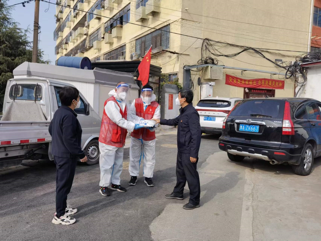 但軍人本色不改。從10月13日起,尹曉軍、徐偉、張保德三名“退伍老兵”主動到所在社區(qū)進(jìn)行“雙報到”,參與沁河路60號院的各項疫情防控工作。他們積極配合社區(qū)工作人員和醫(yī)務(wù)工作者在核酸采樣現(xiàn)場進(jìn)行秩序維護(hù),提醒檢測人員做好個人防護(hù),耐心為使用手機(jī)不熟練的老年人提供幫助,引導(dǎo)群眾嚴(yán)格落實“兩米線”“戴口罩”等要求;做好門崗的值守,向需要出門的人員解釋防疫政策。疫情面前,他們始終保持軍人雷厲風(fēng)行的姿態(tài),每天準(zhǔn)時出現(xiàn)在疫情防控志愿服務(wù)現(xiàn)場,往返于服務(wù)群眾的路上。在這個特殊的戰(zhàn)場上,他們是“引導(dǎo)員”、是“配送員”、是“保安員”,雖然身份在變,但不變的,是一名共產(chǎn)黨員、一名軍人永遠(yuǎn)沖鋒一線,為民服務(wù)的初心!