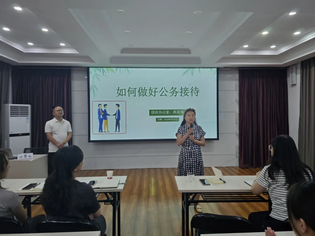 根據(jù)路通公司2024年度企業(yè)內(nèi)培安排,為提升廣大干部職工職業(yè)素養(yǎng),掌握公務(wù)接待禮儀規(guī)范和細(xì)節(jié),提高員工公務(wù)接待能力,8月29日下午,機(jī)關(guān)綜合辦職員高泉海以“如何做好公務(wù)接待”為主題開展了此次培訓(xùn)課程。路通公司副總經(jīng)理周麗娟出席活動(dòng)現(xiàn)場(chǎng),各部室、各單位職員40余人參加,綜合辦主任宋艷麗主持本次培訓(xùn)。