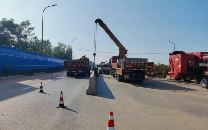 截至目前,已完成混凝土護(hù)欄吊裝 148 塊、爆閃燈 4 套、改道提醒標(biāo)志 3 套、示警樁 189 根,下一階段將繼續(xù)施工防撞桶、護(hù)欄立面標(biāo)記、道路交通標(biāo)線。