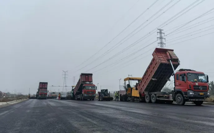 10 月 28 日中午,隨著最后一車上面層瀝青混凝土攤鋪碾壓的結(jié)束,G107 線東移(鄭開交界至炎黃大道段)新建工程施工項目的主體工程已全部完成,達到通車條件。